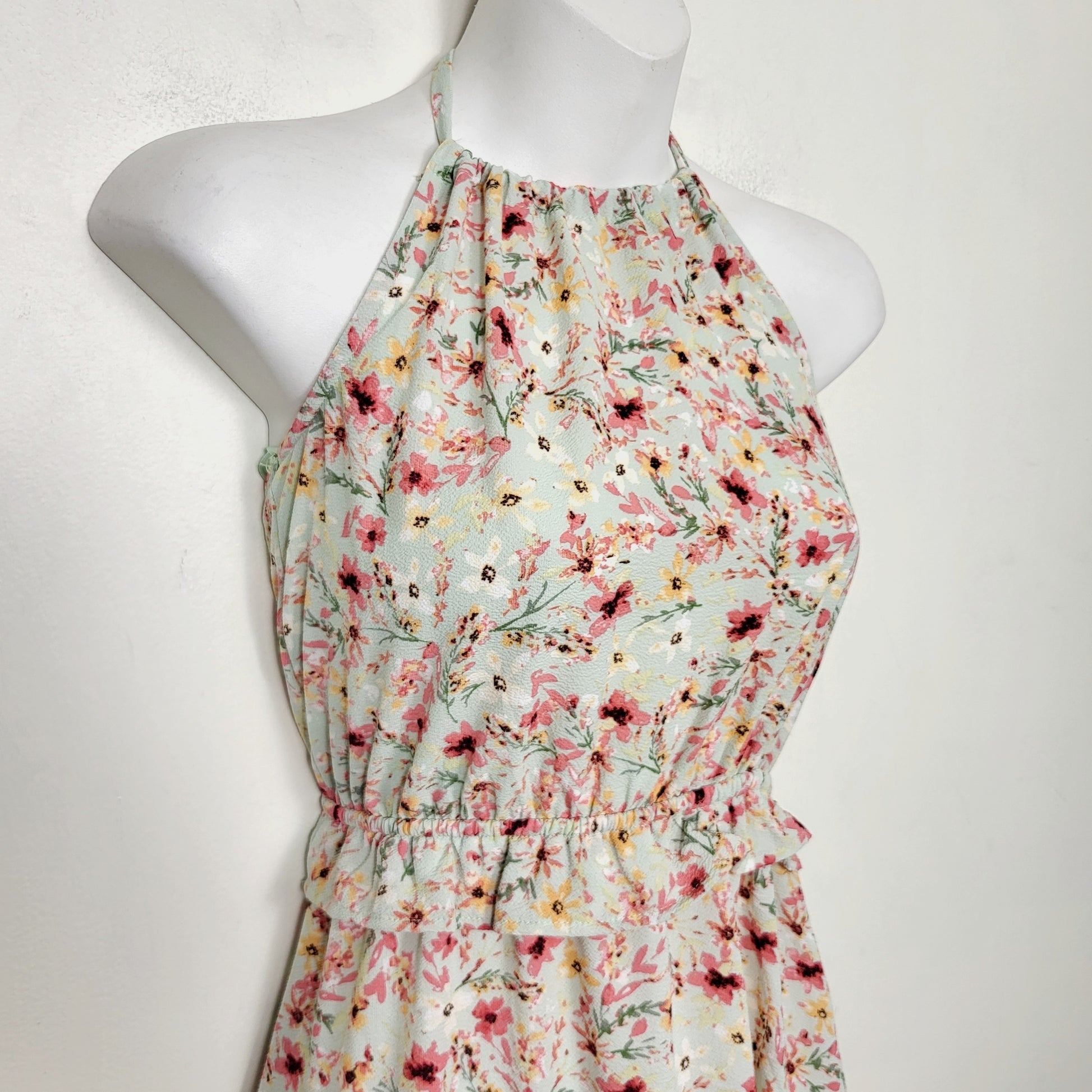 AMLE1 - Monteau mint green floral print sleeveless dress. Size XS