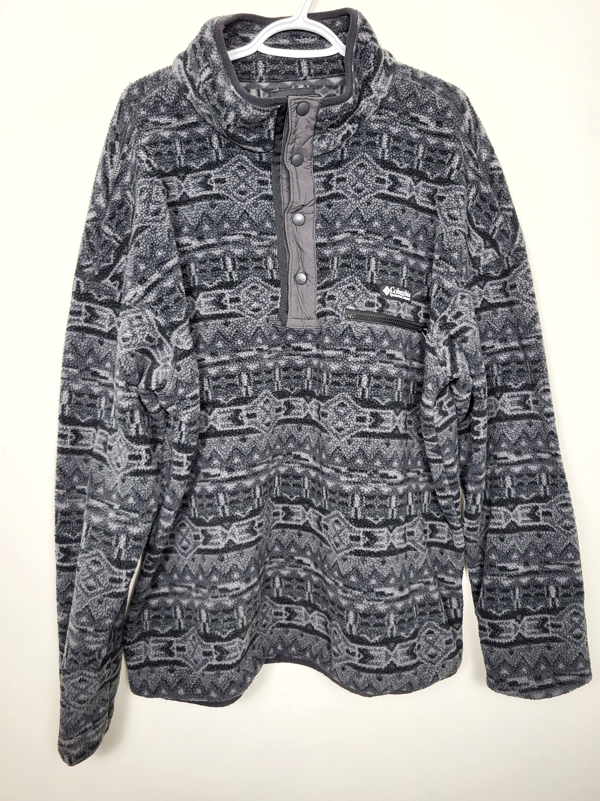Columbia Helvetia II grey and black pattern half snap fleece pullover. Unisex size XXL