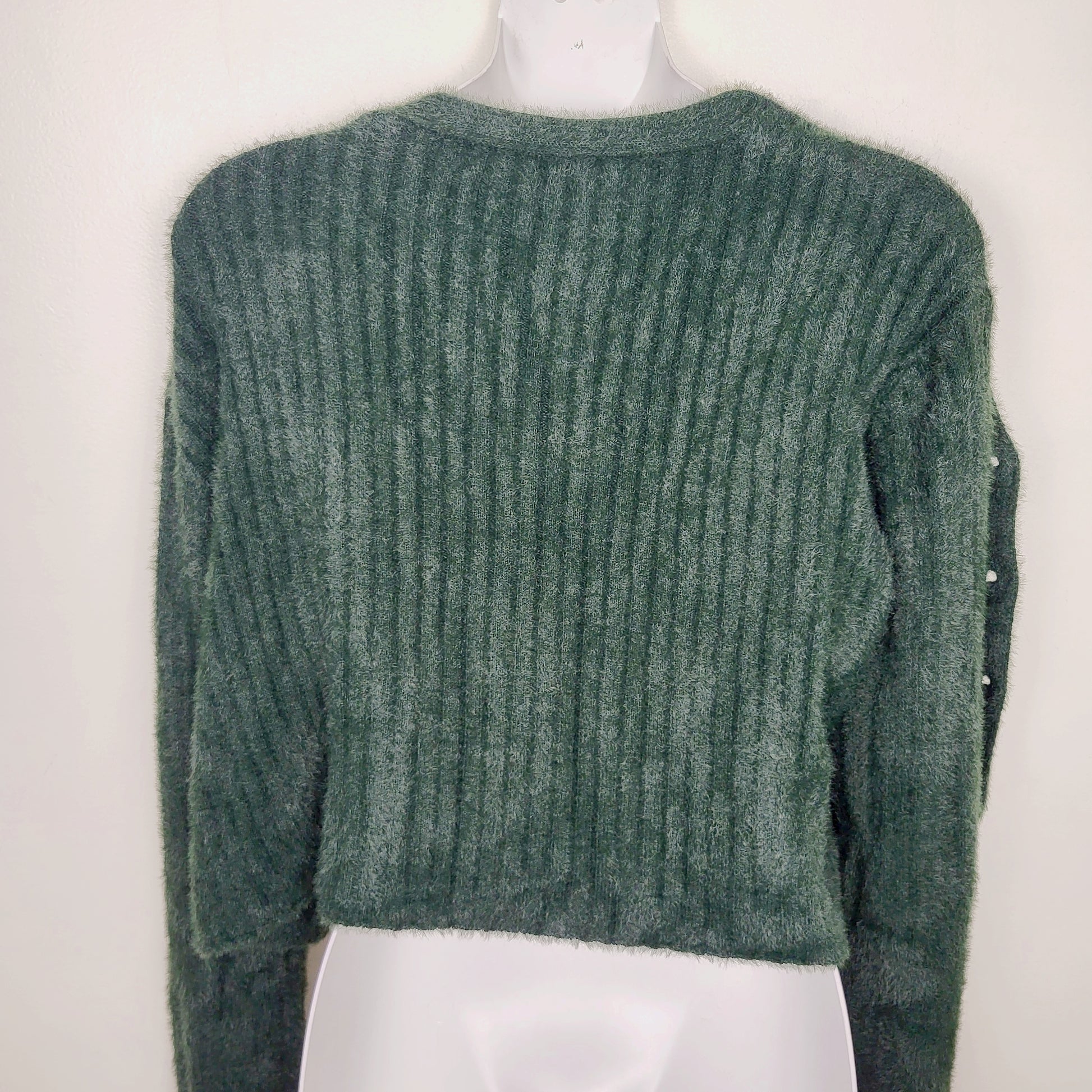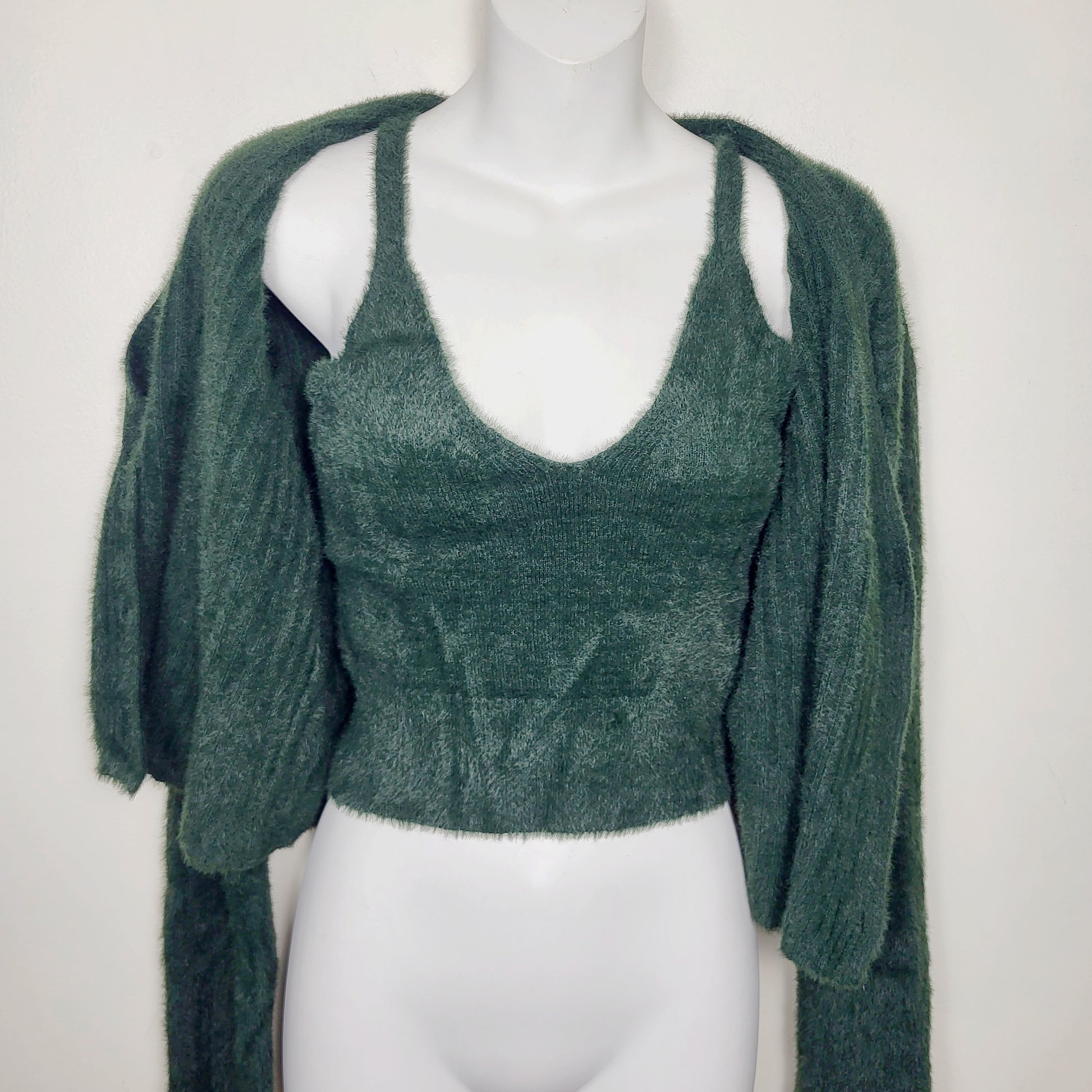 JKZ1 - Love Tree green fuzzy cropped 2pc cardigan set. Size medium