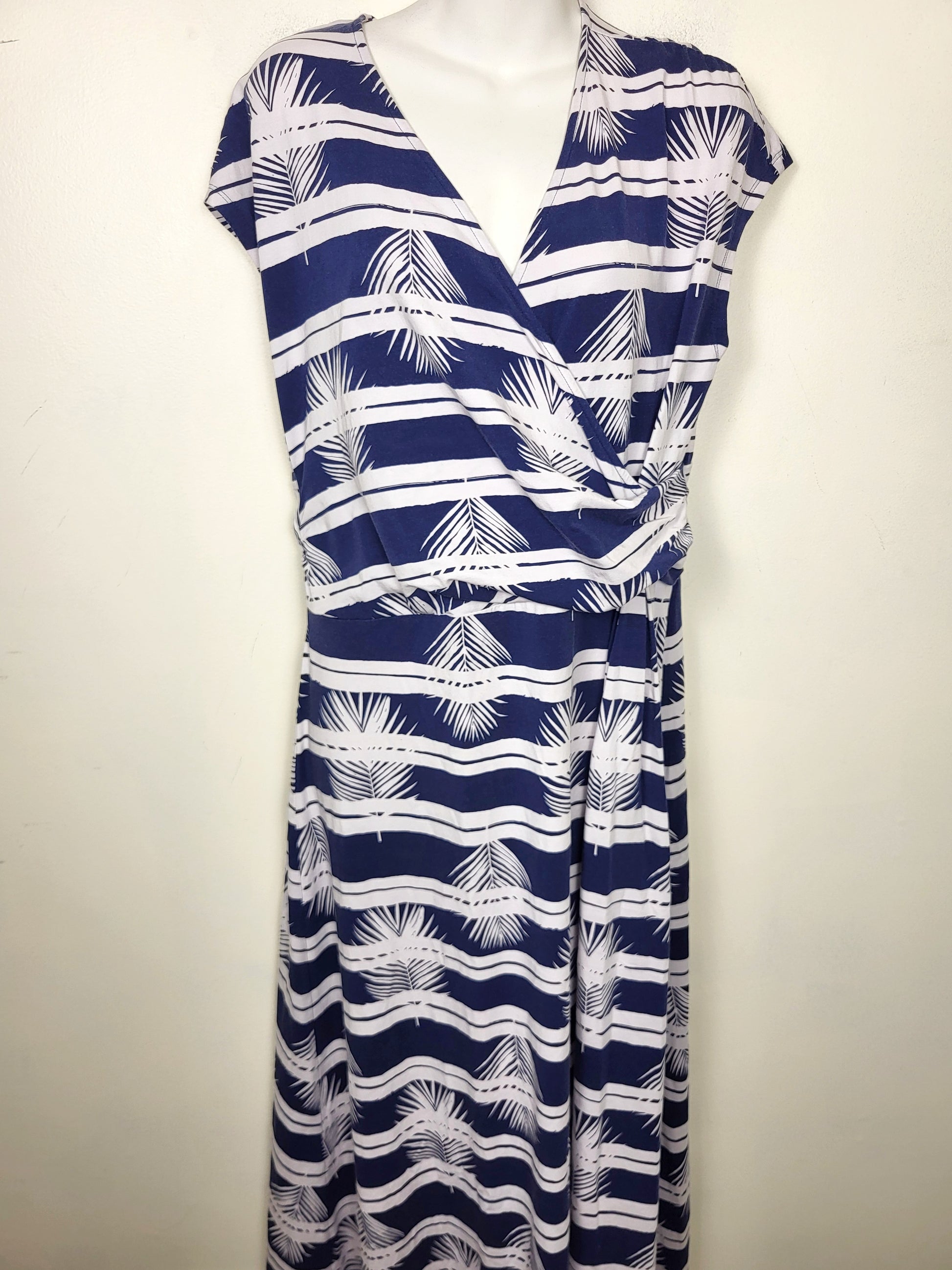 Lands' End Blue And White Floral Mock Wrap Dress. Size 14/16