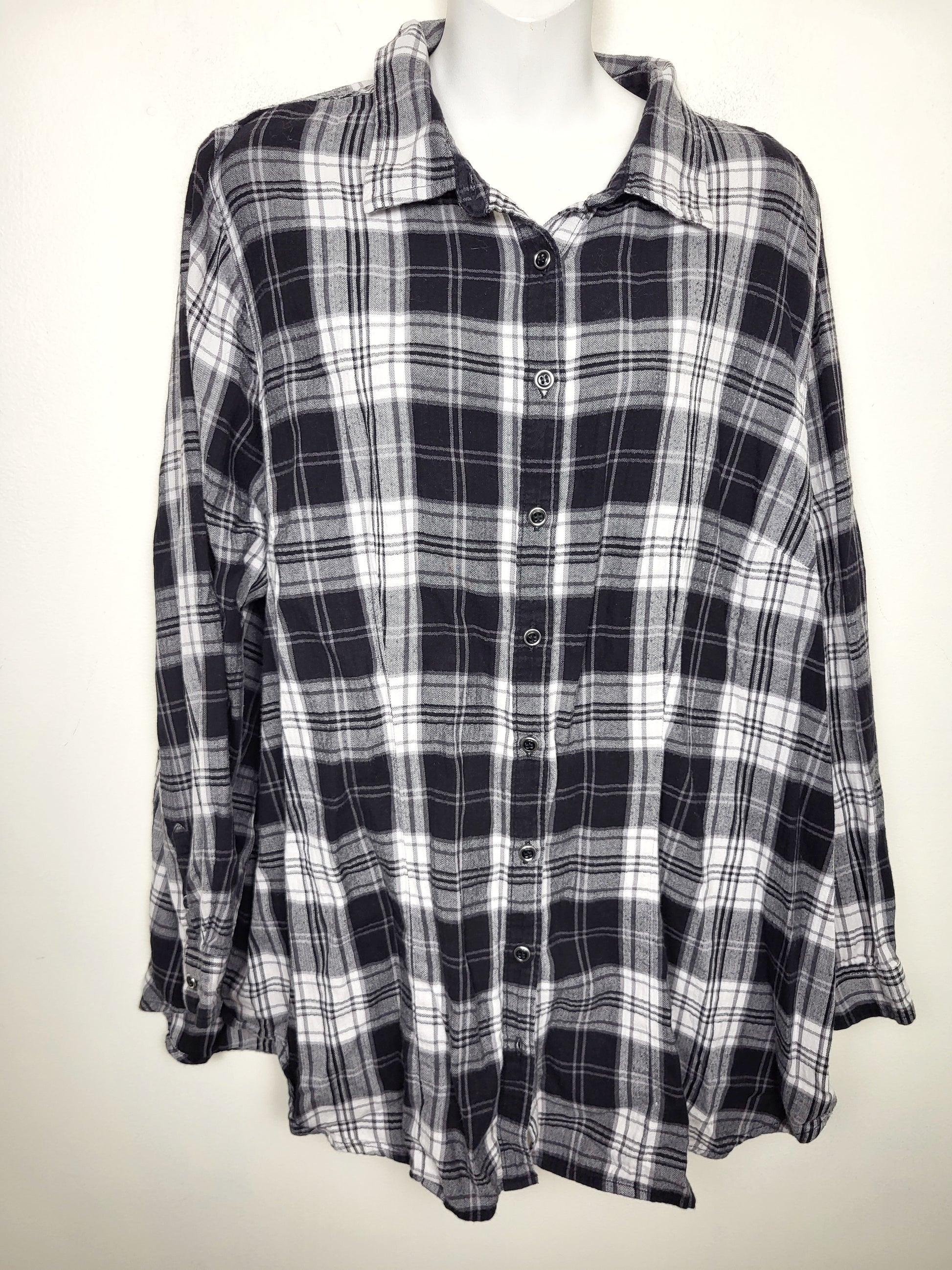 Penningtons black plaid button down top. Size 2X